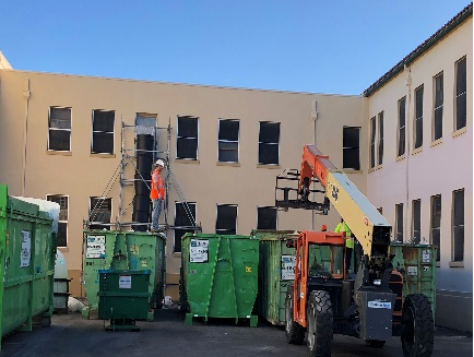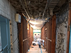 • Abatement of asbestos containing material (ACM), carpets and under base coving.